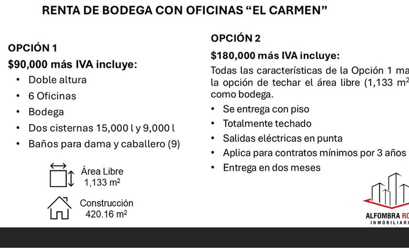 Bodega con oficinas en renta en zona del Carmen ideal para desarrollo comercial, restaurante, almacén, eventos sociales, gimnasio, oficinas, empresa de fabricación, etc.